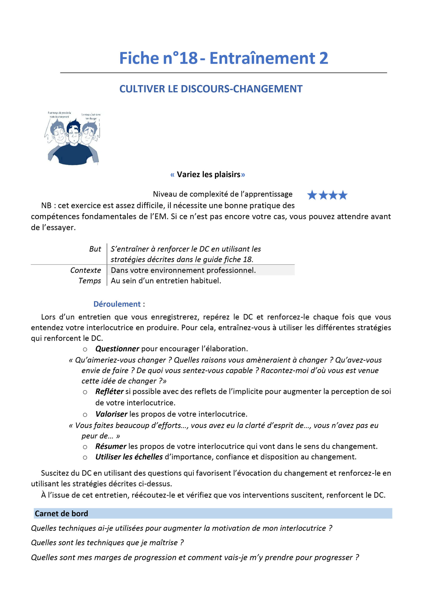 Intégrer dans vos entretiens des stratégies qui augmentent la motivation au changement de votre interlocutrice.