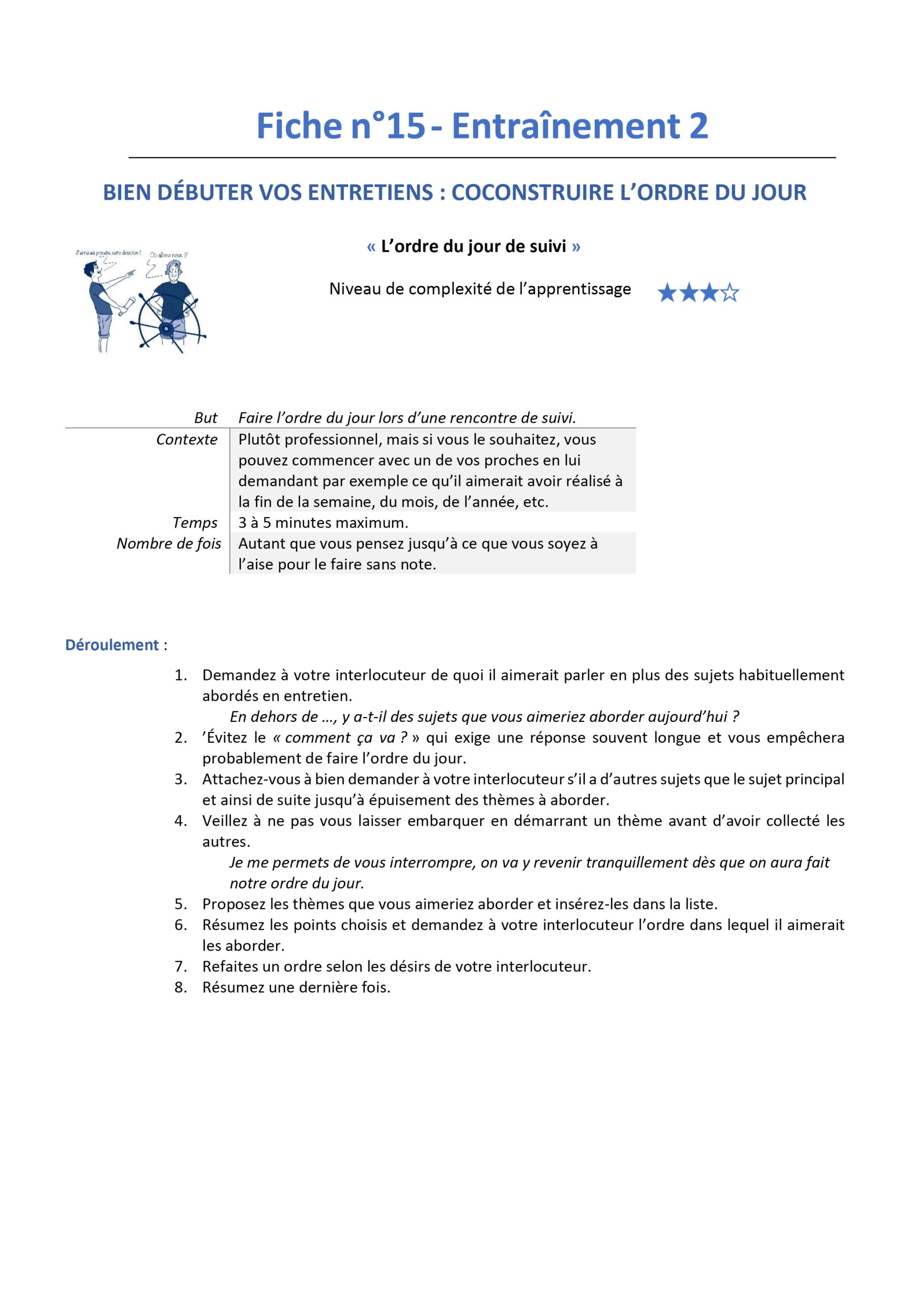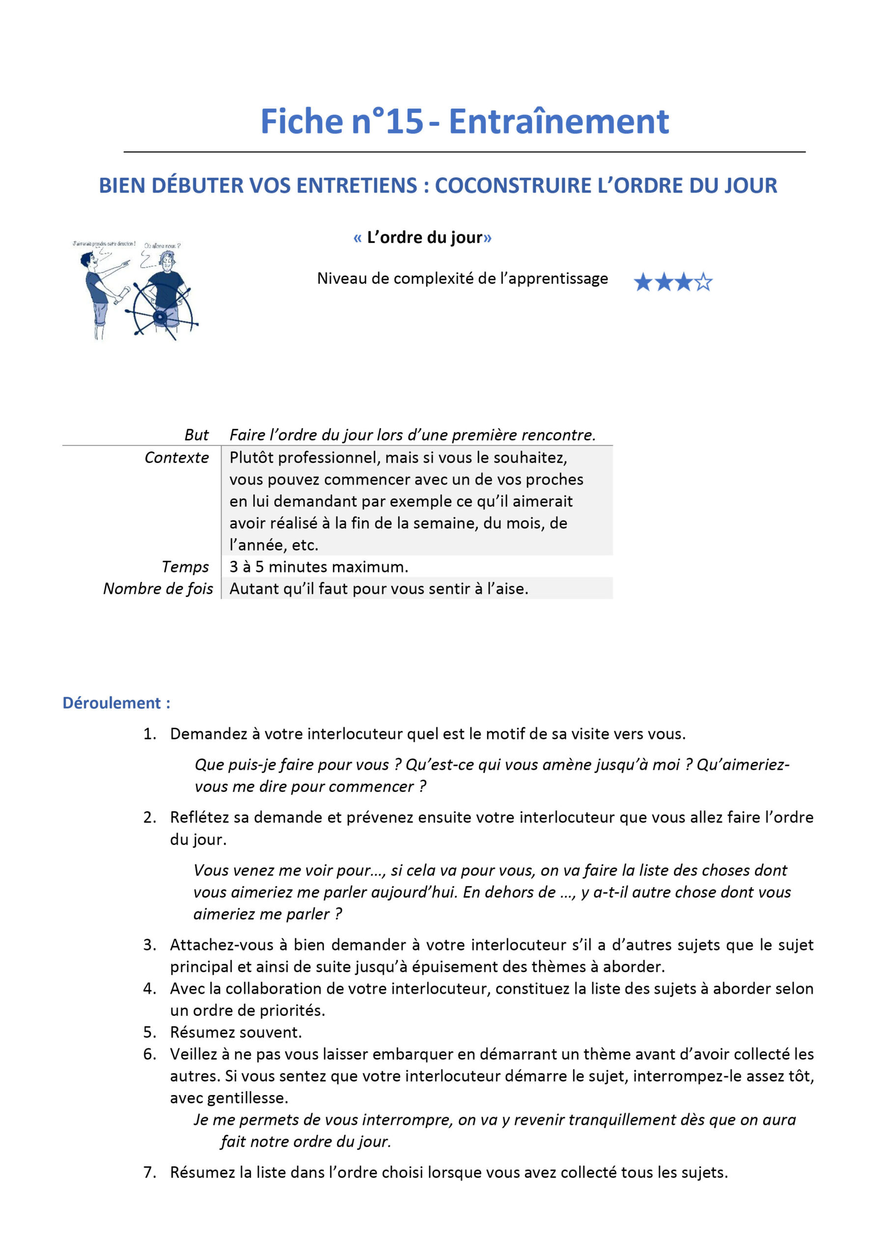 – Réaliser tout cela en maintenant l’esprit de collaboration et en honorant l’autonomie de votre interlocuteur.