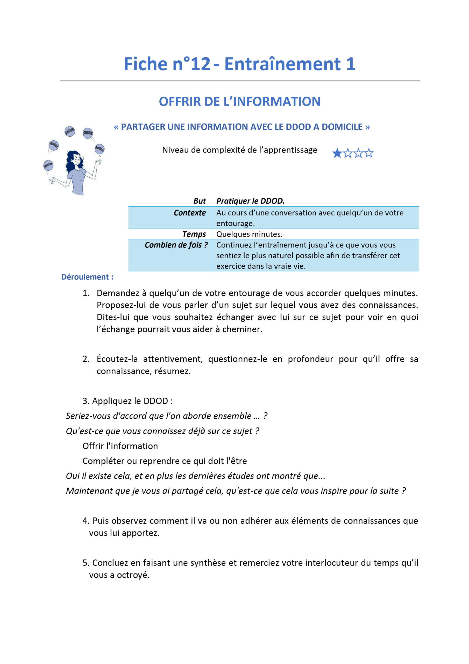 Partager une information avec la méthode du Demander, De-mander, Offrir, Demander (DDOD).